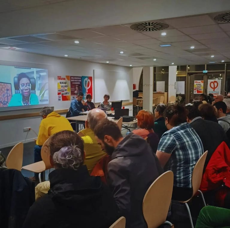 Réunion publique de nos deux députées Danièle Obono et Sylvie Ferrer sur la réouverture des services publics et contre la loi immigration.
